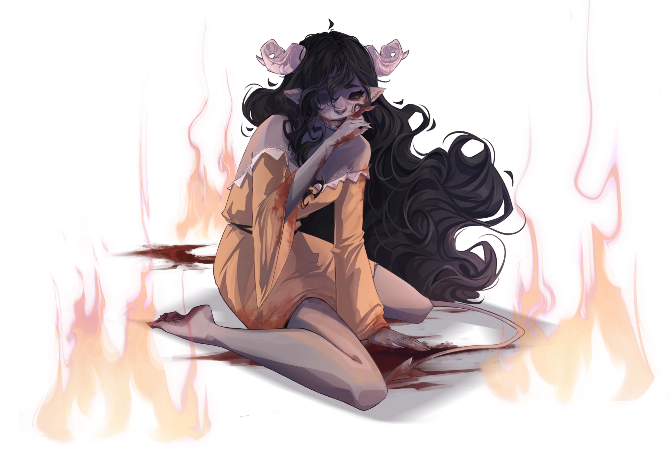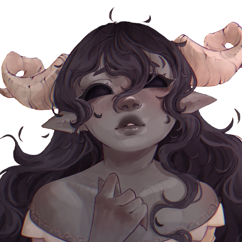 When it finally awoke, it's eyes could only see his mangled corpse, life having left his eyes long before she had ever came to. It spent hours staring him down, body beyond repair yet the tiefling patiently waited for him to move. He had to move. He was tired. But.. . he's not breathing. But.. . He's tired. He'll wake up. Won't he?More hours passed, but still not a twitch of his muscle, winds only teasings with wifts passed his hair. How much longer would he sleep?...How long would she keep hoping it's true?It wouldn't have been so bad to simply lay there forever, it was far too quite for there to have been anything nearby, with only gentle noises of rushing water filling the air. Perhaps it'd simply fall asleep, and pass on with him.It was grim, wishful thinking, one that was quickly diminished as hunger began to settle into Lyomie's mind. Days had passed, and their stomach had began to growl louder than the river, acids eating the tiefling's insides alive. It needed to eat Something. But even if the aching pain has dulled with time's passing, she was far too weak to forage, and there was nothing nearby that it could see.. ....